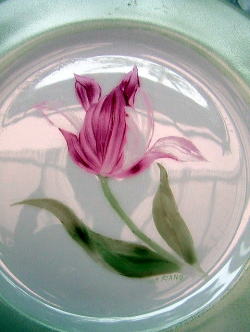 以前チャイナペインティングのお教室で描いた。。チューリップのお皿です。。@