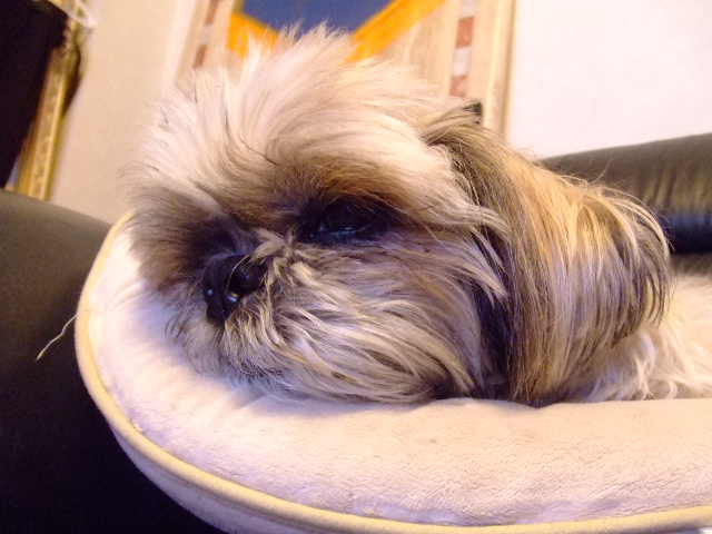 チャッピーが爆睡していたので そっとお菓子を食べていたら