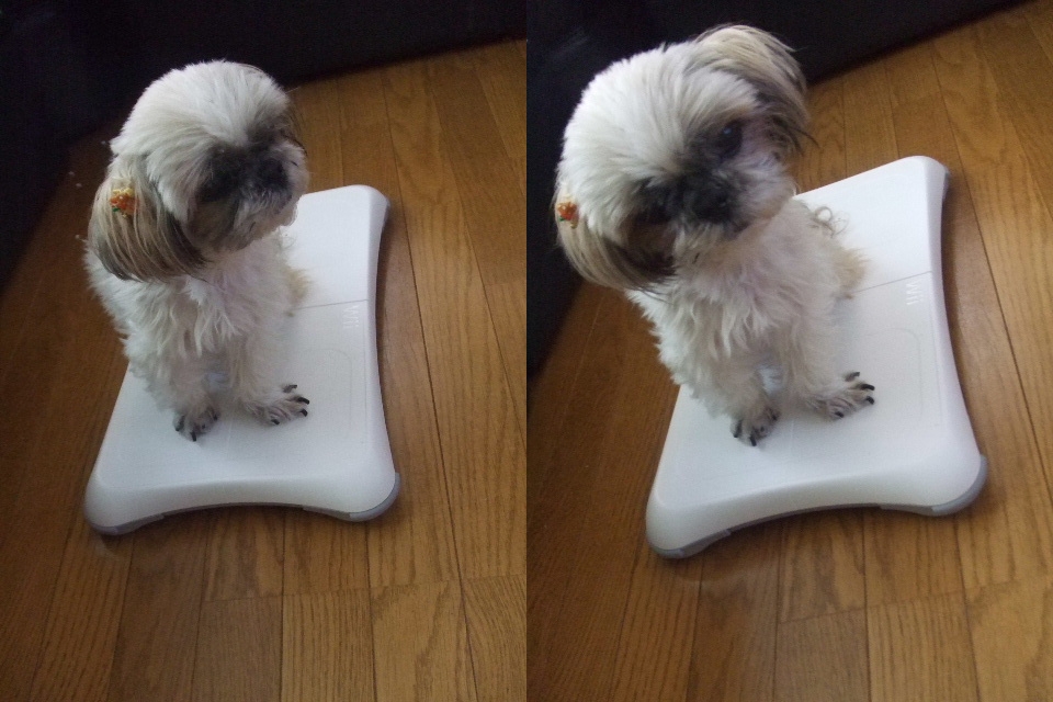 お客様が遊びに来るなりチャッピーは突然wiiボードの上へ。。。