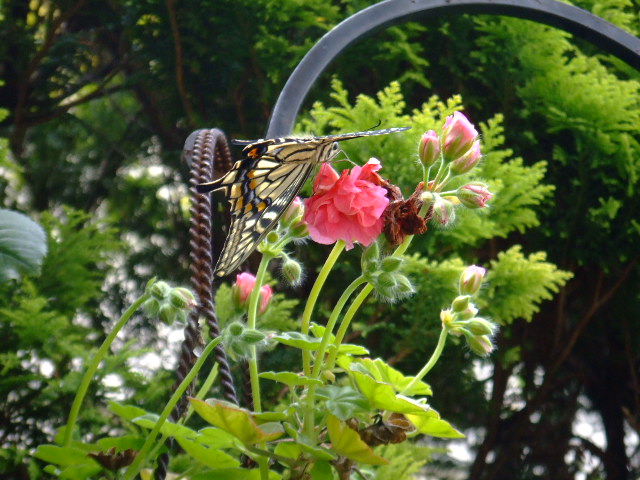 。。ゼラニウムのお花に巨大アゲハ蝶が。。。キレイ。。。